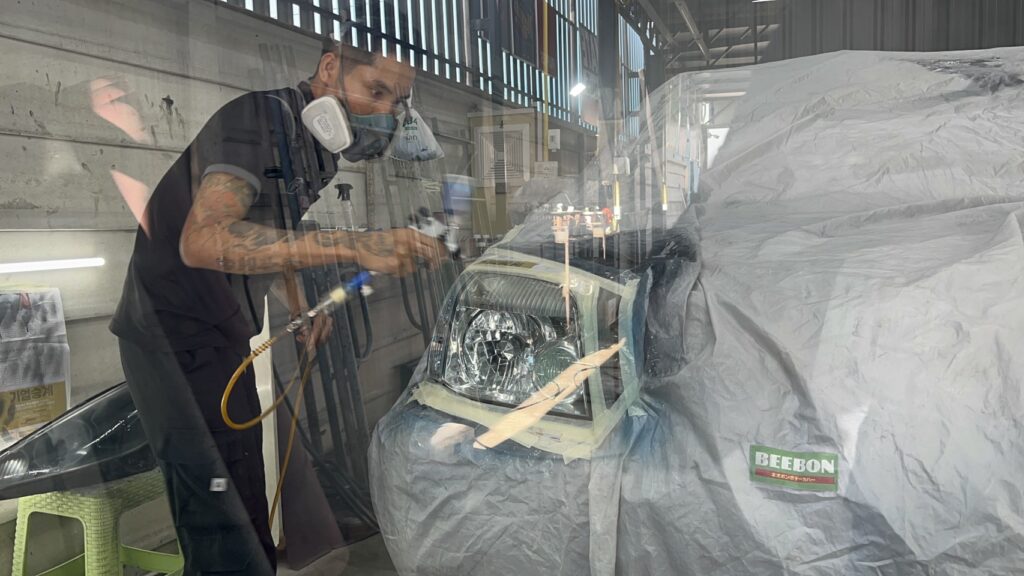 - คลุมรถทุกคันก่อนพ่น ป้องกันละอองไม่ให้กระทบสีรถ